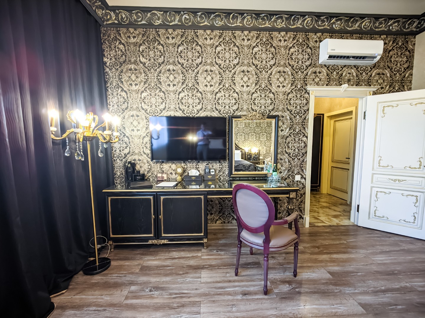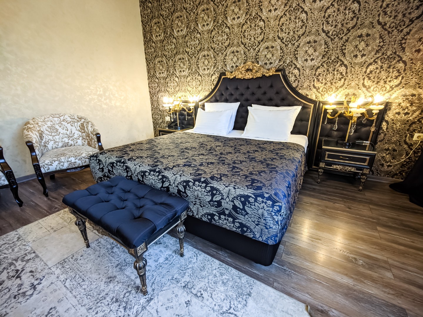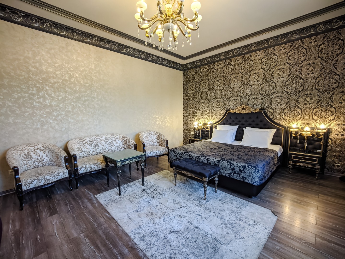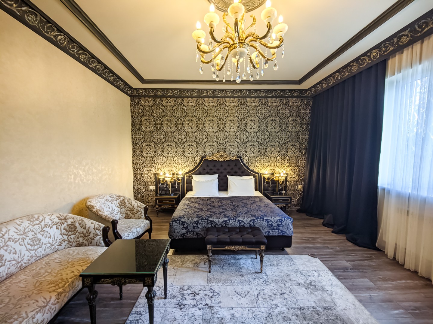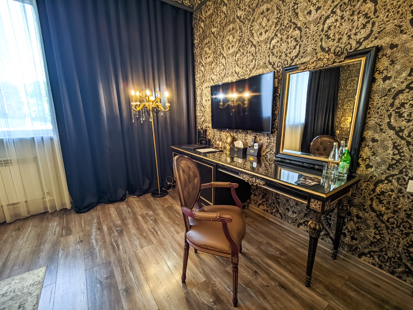 В номере: двуспальная кровать с возможным разделением на 2 односпальные, мягкая зона для досуга, прикроватные тумбы, светильники, торшер, туалетный столик и кресла, платяной шкаф, сейф, мини-бар, минеральная вода и вода без газа включенная в стоимость, кабельное ТВ, ЖК телевизор, Wi-Fi, кондиционер, необходимые принадлежности для ухода за верхней одеждой, гладильные принадлежности, прекрасный вид на футбольное поле и парковую зону, звукоизоляция.