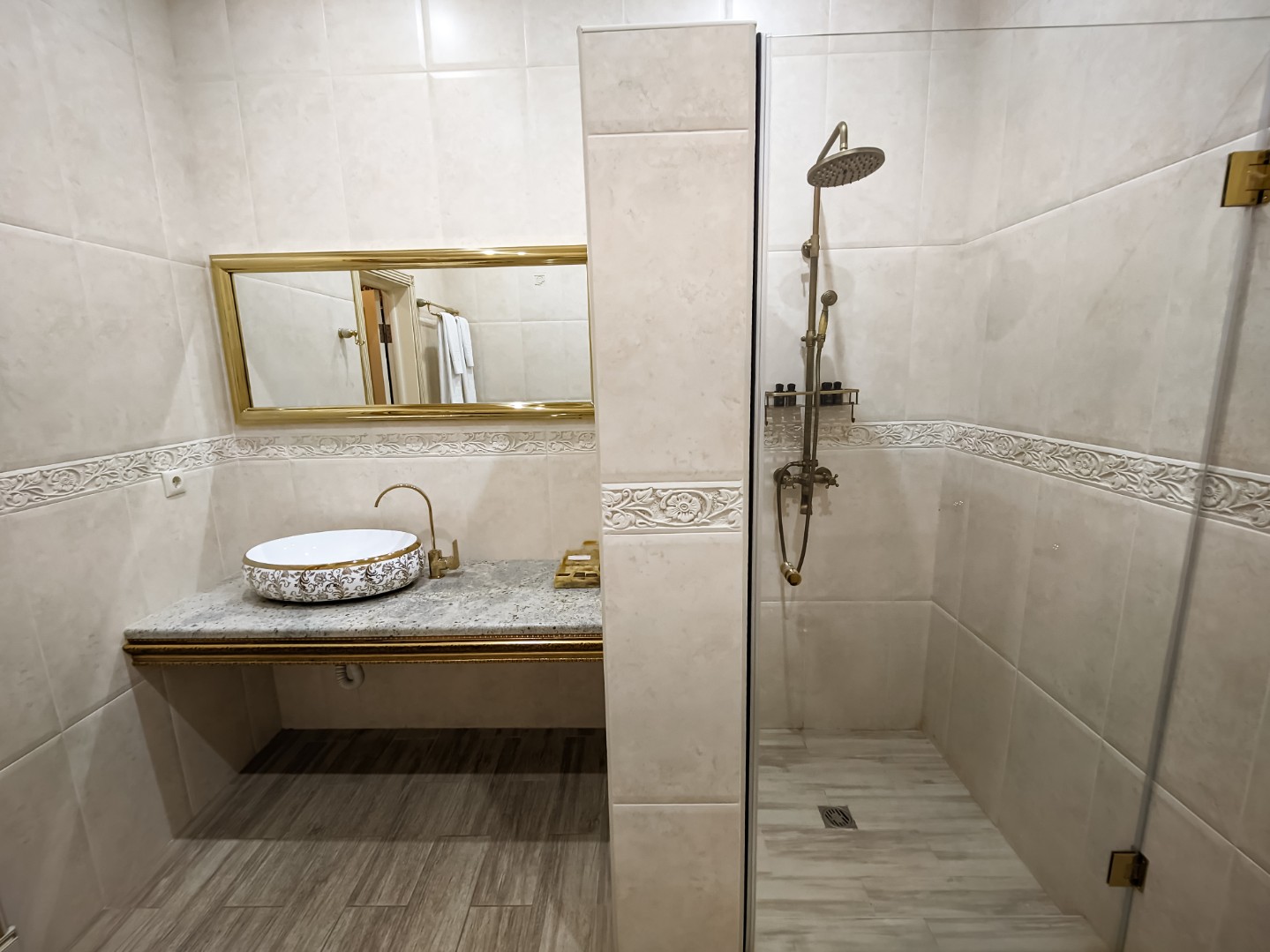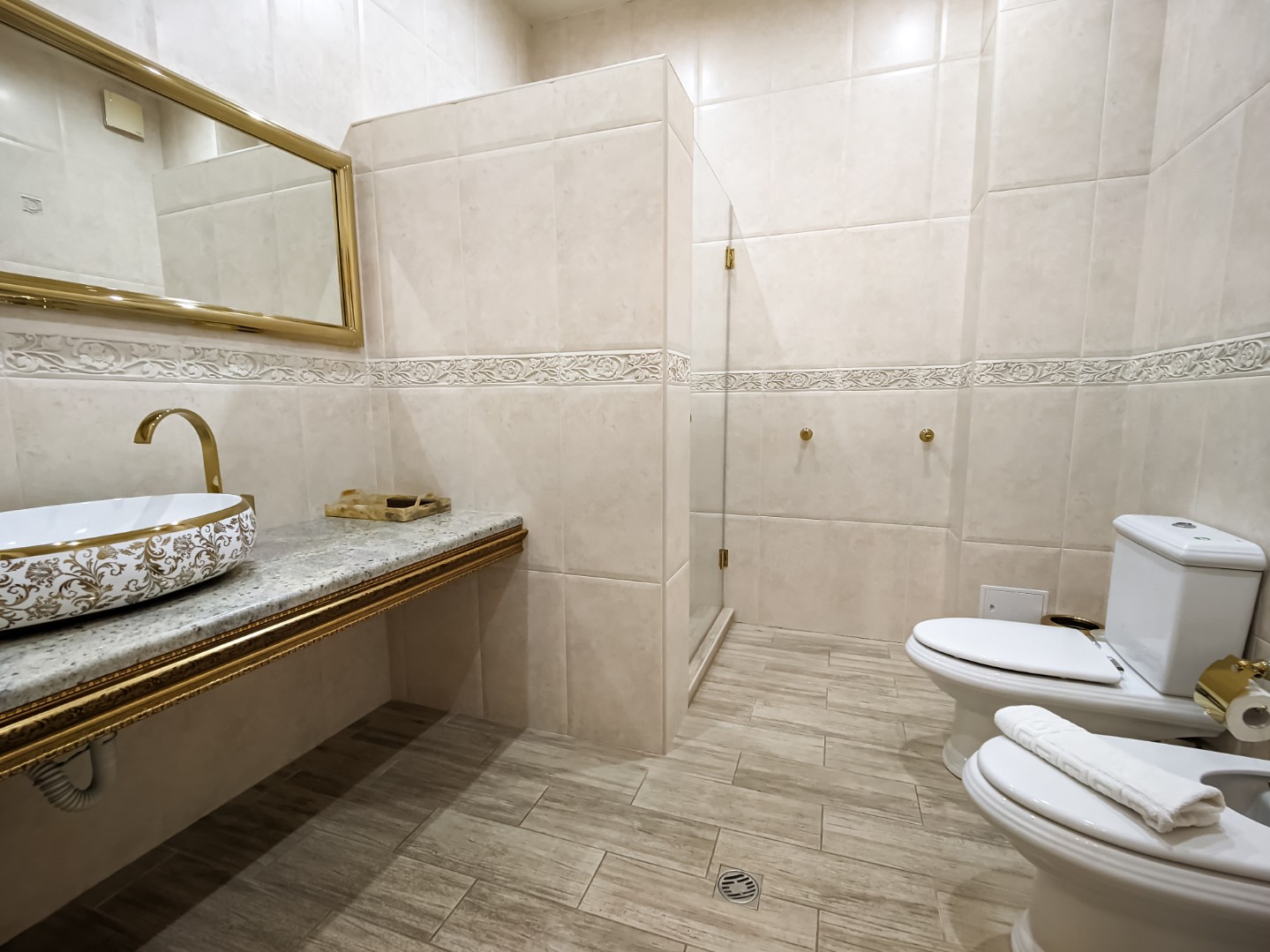 В ванной: душевая кабина, умывальник, санузел, на 2 персоны: полотенца, халаты, тапочки, фен, бесплатные гигиенические принадлежности. По просьбе гостей возможно добавить всё необходимое!